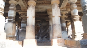 А рядом с главным храмом находится павильон с великолепно исполненным Нанди.