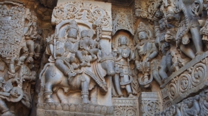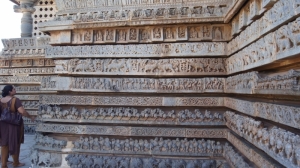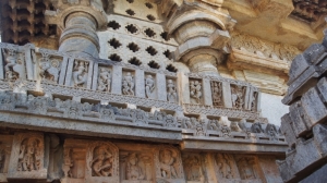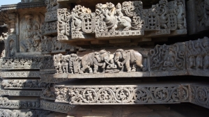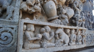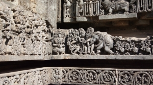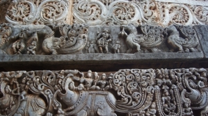 Совершенно с ней согласна! Пышность Ченнакешара уступает изяществу Хойсалешвара. И это замечаешь даже при разглядывании барельефов фундамента храма. Эти крохотные скульптуры зачастую не повторяют одна другую на протяжении целого ряда.