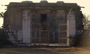 И пошли, сквозь кактусы и камни, оставив по правую руку холм Чандрагири. Вышли к стене, окружающей храм, обошли ее, прошли сквозь деревню, выдерживая нужное направление, и подошли к открытым воротам...