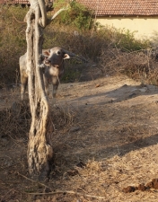Удовлетворенный совсем небольшой денешкой, он вызвался проводить нас до короткой дороги к подъему на храмовый холм. А то мы бы пошли назад, к тем двум беседкам! Но он провел нас через деревню, и уже шла вечерняя дойка коров, и Дургатна пыталась купить кружку свежего парного молока.