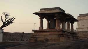 Есть еще одно знаковое место в Чандрагири, находящееся за территорией монастыря и зажатое под скалой - пещера Бхадрабаху. По преданию, в ней Свами прибег к сантхаре — полному отказу от пищи, совершаемому старцами, аскетами, святыми, готовящимися к смерти.
