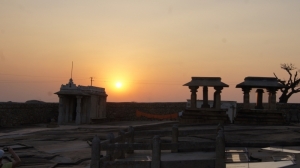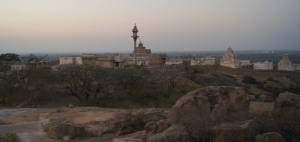 Находясь на холме Виндхьягири мы разглядывали холм Чандрагири не только как эстеты, хотя вид этот и вправду заслуживает восхищения. Но мы изучали окрестности с топографической точки зрения: вели аэрофотосъемку на мемористик головного мозга. Долго прикидывали: во сколько нам туда отправиться? Времени у нас полно - но! Важное но! Босиком по горячим ступеням взойти на холм? Ведь мы не очень убежденные джайны, хотя и я перестала убивать тараканов и муравьев.
